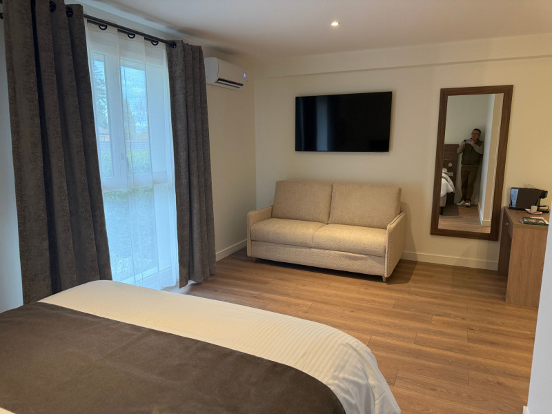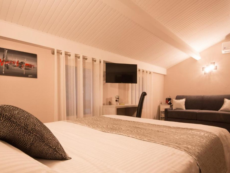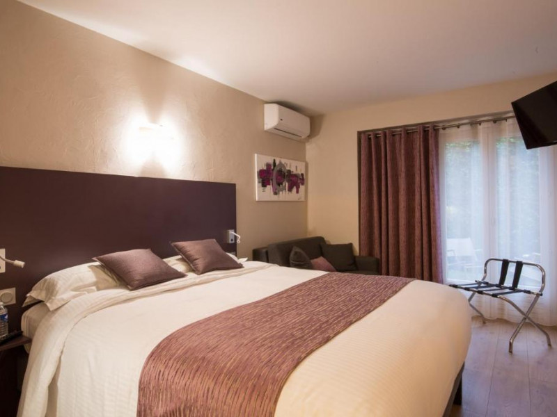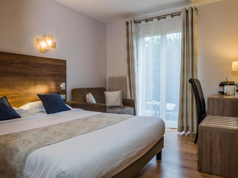 The Logis Hotel Le Petit Casset has 22 elegant, quiet, air-conditioned rooms that have been carefully decorated. High-end bedding, modern bathroom (bathtub or walk-in shower), terrace or balcony depending on the category, espresso machine, free Wi-Fi and workspace. Some rooms overlook the garden on the ground floor, while others are situated on the first floor.